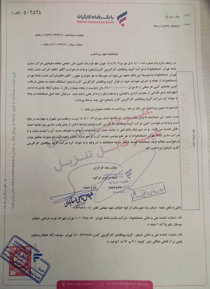 - نام نهاد مالی: کارگزاری بانک کارآفرین